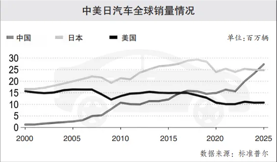 从新能源汽车的持续领先,到海外市场的加速扩张,再到智能化技术的全面渗透,中国车企的崛起有目共睹。数据显示,2025年,中国新能源汽车产销已连续11年稳居全球第一,比亚迪在纯电动车型销量上超过特斯拉,三家中国车企——比亚迪、上汽、吉利,成功跻身全球销量前十。与此同时,海外销量也实现了大幅增长。